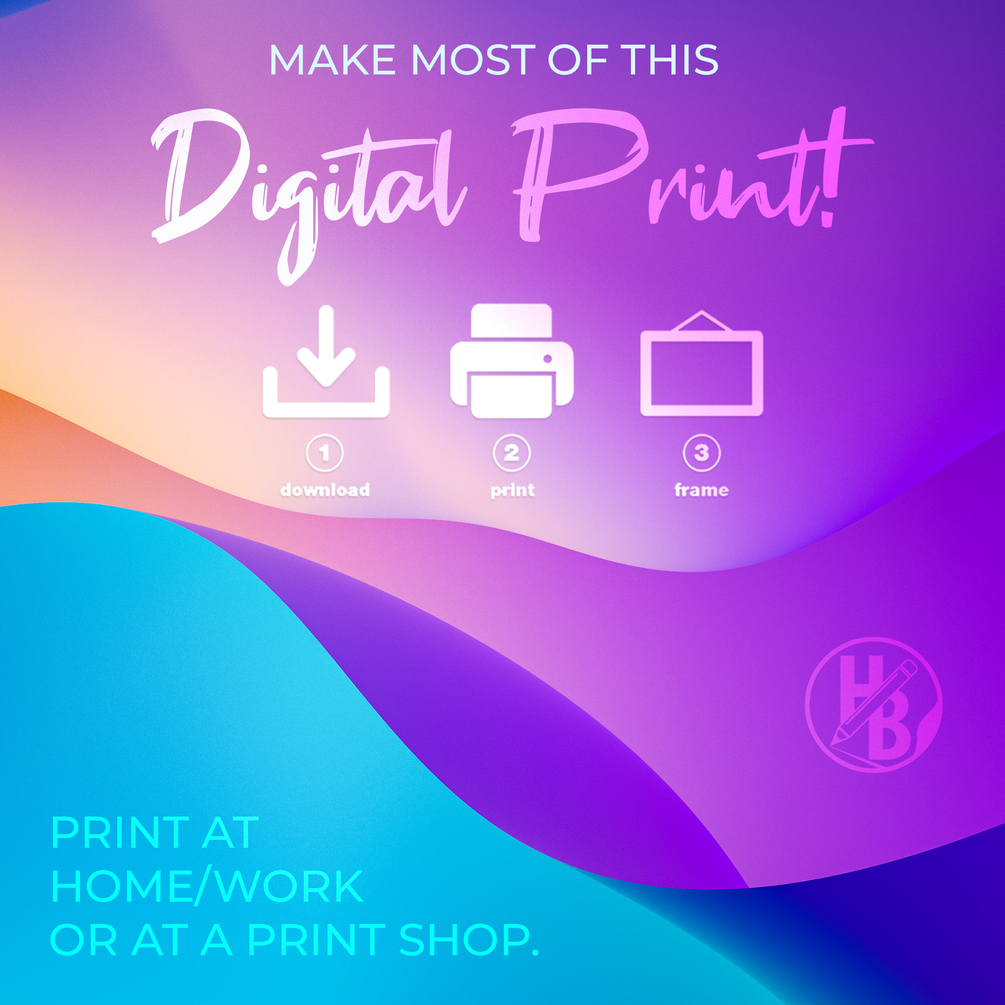 The listing includes Two Jpg of 300 dpi. Easily print at home (smaller sizes) or at a print shop.